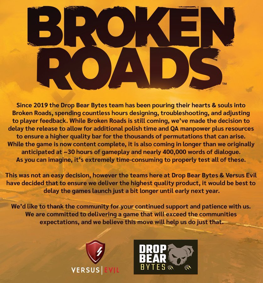 Judul : Broken Roads gets delayed to early 2024